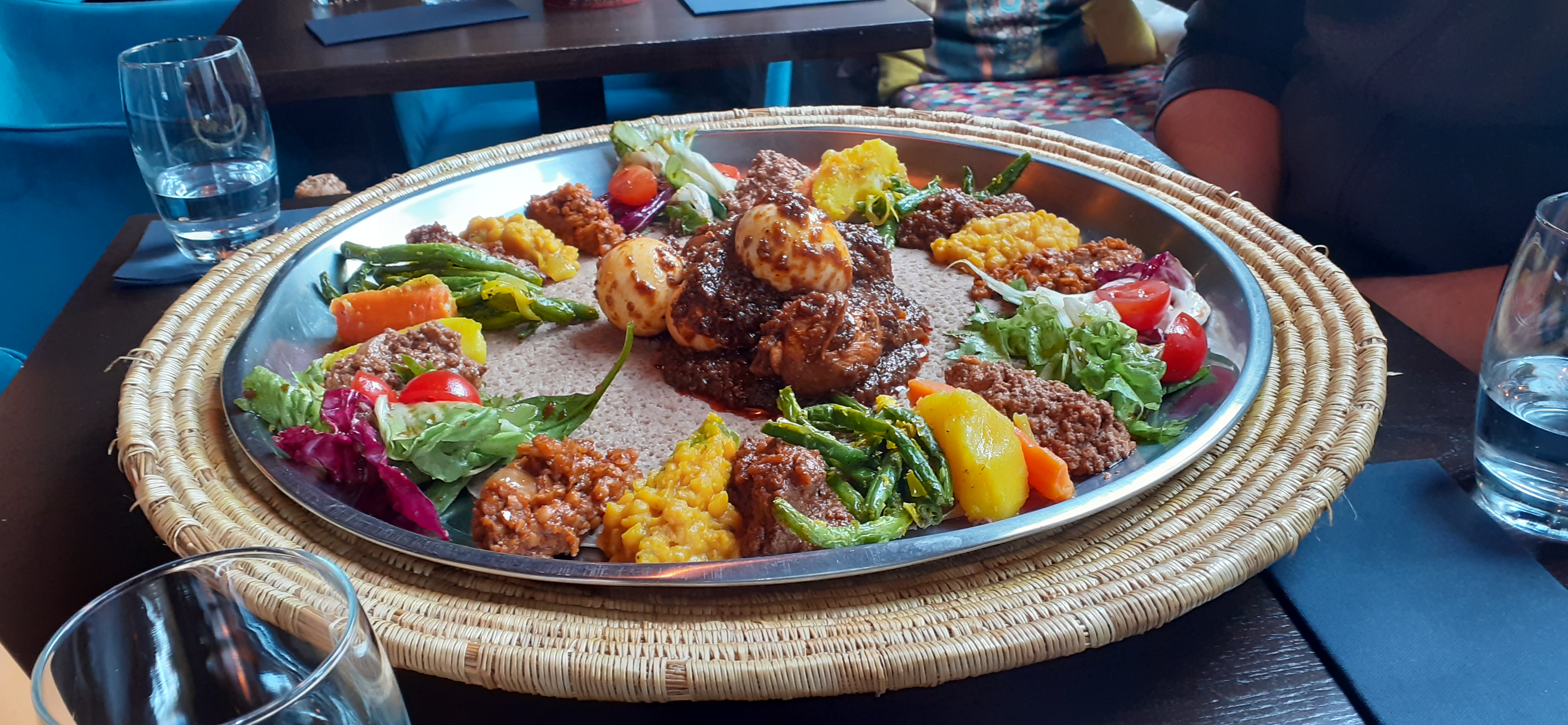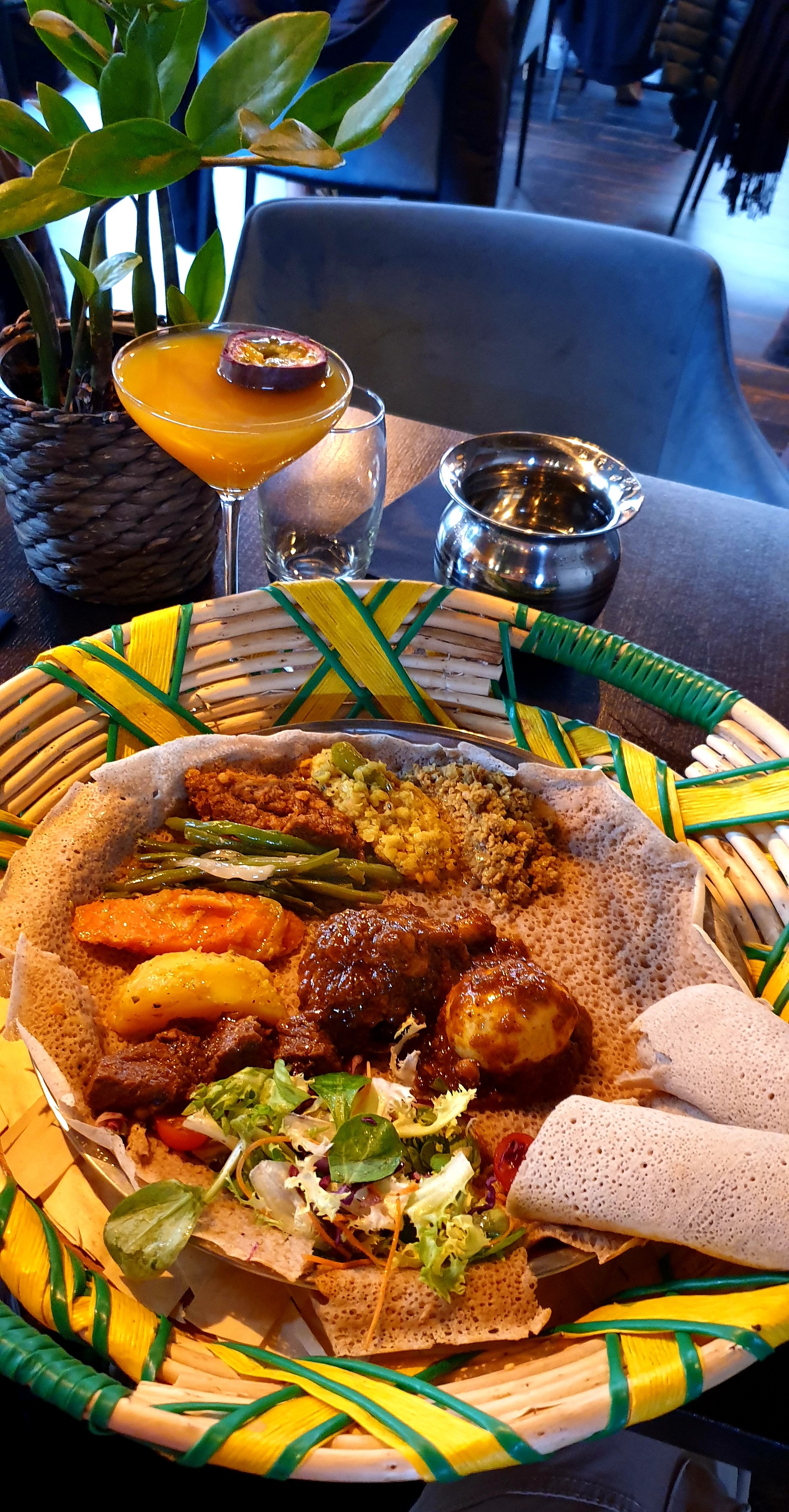 Belle expérience et dépaysement garanti ! Restaurant très joliment décoré et cuisine éthiopienne surprenante. Deux précisions : on mange avec les doigts et nombre de préparations sont épicées. On s'est vraiment régalé avec des saveurs nouvelles pour nos palais . Seul petit bémol : la porte donnant sur les WC est difficile à manœuvrer (accès au lavabo pour laver les mains après le repas).