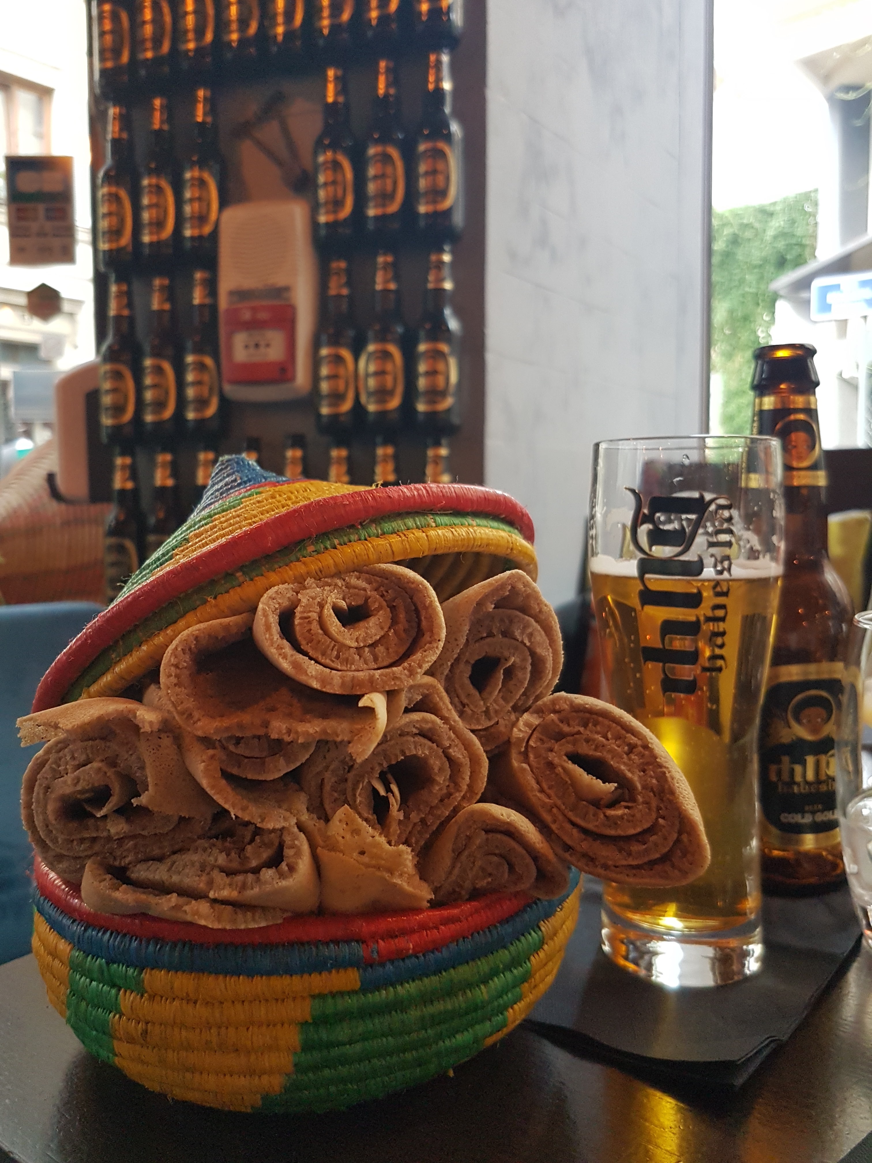 Je suis allée à ce restaurant hier soir avec six potes et c'était super! Une de mes amies est végétalienne, l'autre est végetarienne et nous autres sommes omnivores. Nous avons donc gouté tous leur ménus (injera végetalienne/végeratienne/viande/poisson) et c'était vraiment délicieux. J'ai adoré les lentilles, ils étaient très bien épicés, là je regarde des recettes sur youtube pour les faire à la maison! C'était une expérience sympa et conviviale, on mange ensemble sur le même plat avec les mains (par contre, ils vous donnent aussi des assiettes si vous souhaitez!). Le propriétaire était très gentil, nous avons assisté aussi à une céremonie de café. Bref, je le conseil vivement, j'ai passé une super soirée, j'ai adoré leur plats et je reviendrai très tôt.